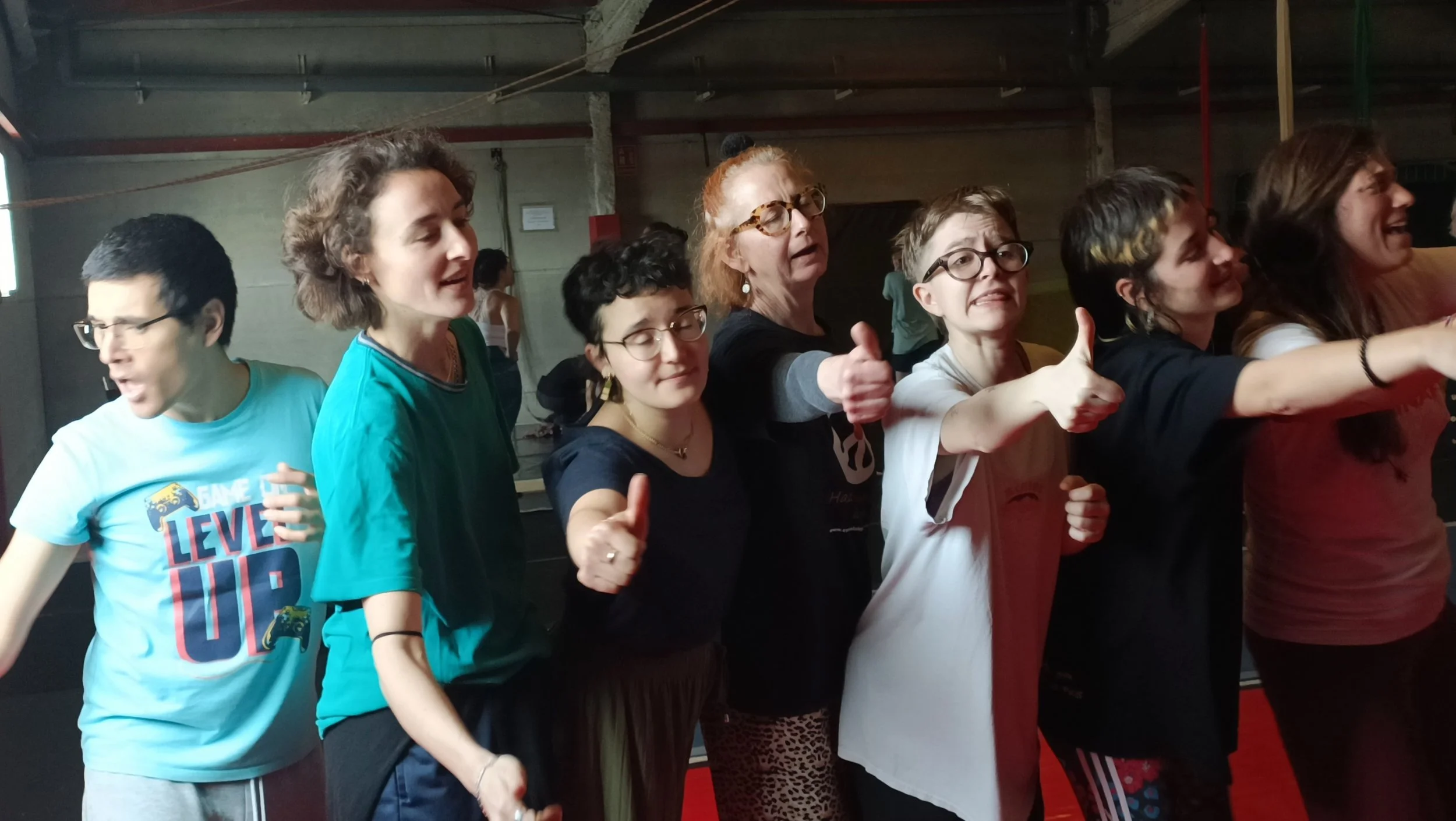 People start to arrive in the Espai de Circ, we are a group of 22, including Robyn, myself and Didi from Valencia who has organised and managed to gather us all in this wonderful collective circus space, a project of Associació Valenciana de Circ (AVC) that has been in this location for the last 15 years. This is our 6th Nomadic Rebel Clown Academy since we began in 2023.